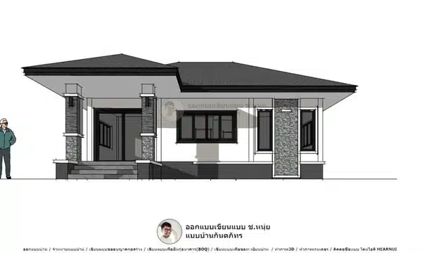 แบบบ้าน3D P-673-ทรงจั่วไทยคลาสสิค บ้านไม้ประยุกต์ อยู่สบายแบบไทย ๆ แบบบ้านคอทเทจ, แบบบ้านจั่ว, แบบบ้านชั้นเดียว / คำนวณราคาบ้าน, บริการทำภาพ3D, บริการทำภาพ3มิติ, บีโอคิวยื่นกู้ธนาคาร, รับออกแบบบ้าน, รับเขียนแบบบ้าน, ออกแบบบ้าน, เขียนแบบบ้าน, แบบบ้านจั่ว, แบบบ้านชั้นเดียว