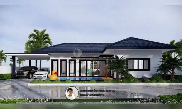 บ้านปั้นหยาสวยทันสมัย แบบบ้านอบอุ่น-P-583 ขนาด 2 ห้องนอน แบบบ้านคอนเทมโพรารี่, แบบบ้านชั้นเดียว / คำนวณราคาบ้าน, บริการทำภาพ3D, บริการทำภาพ3มิติ, บีโอคิวยื่นกู้ธนาคาร, รับออกแบบบ้าน, รับเขียนแบบบ้าน, ออกแบบบ้าน, เขียนแบบบ้าน, แบบบ้านคอนเทมโพรารี่, แบบบ้านชั้นเดียว, โรงจอดรถ