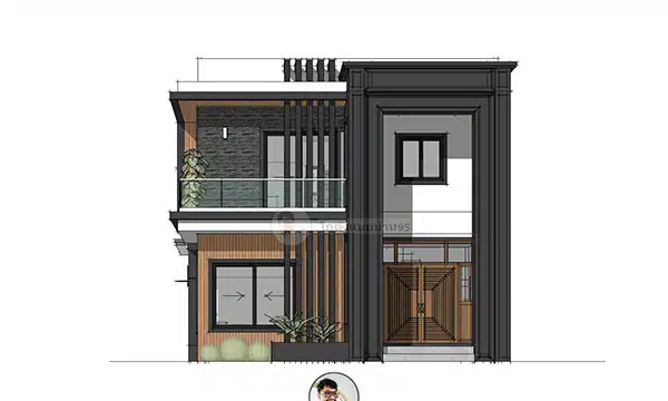 แบบบ้าน2ชั้น แบบบ้านสมัยใหม่-P-1595 บ้านดีไซน์อบอุ่นยอดฮิต 3 ห้องนอน