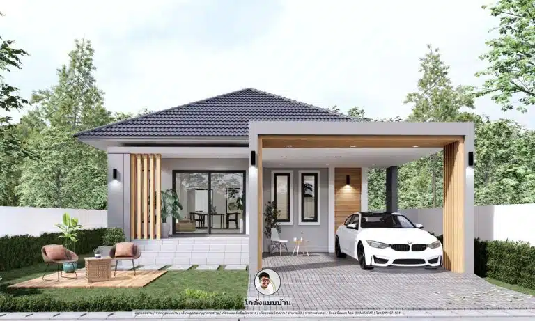 บ้านปั้นหยาชั้นเดียว P-1056 ดีไซน์ลงตัว พร้อมที่จอดรถ 2 คัน