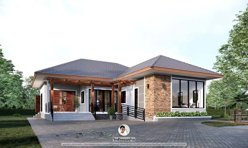 บ้านยอดนิยม แบบบ้านชั้นเดียว-P-1008 แบบบ้านครอบครัว บ้านขนาดกะทัดรัด เอาใจคนรุ่นใหม่ แบบบ้านชั้นเดียว One Storeyhouse บ้านทันสมัย แบบบ้านคอนเทมโพรารี่ Contemporary Style บ้านสวยดีไซน์ทันสมัย เอาใจคนรุ่นใหม่ บ้านสวยไม่ซ้ำใคร ตกแต่งลงตัว สไตล์แบบบ้านโมเดิร์น Modernstyle หรูหรา ดูอบอุ่น แบบบ้านน่าอยู่ บ้านสวยตกแต่งด้วยความทันสมัย เอาใจคนรักบ้าน ที่มาพร้อมกับฟังก์ชั่นการใช้งานที่ครบครันมาก ๆ ผนังเสริมหินสวย ๆ กระจกบานใหญ่หน้าบ้าน ระเบียงหน้าบ้านค่อนข้างกว้าง ๆ มาก ๆ เพียงพอต่อการใช้งาน ด้วยงานเขียนแบบบ้าน คุณภาพ และสามารถเข้าชมแบบบ้านทันสมัย บ้านอบอุ่น แบบบ้านน่าอยู่ได้เลยที่นี่ บ้านสำเร็จรูปดูฟรี