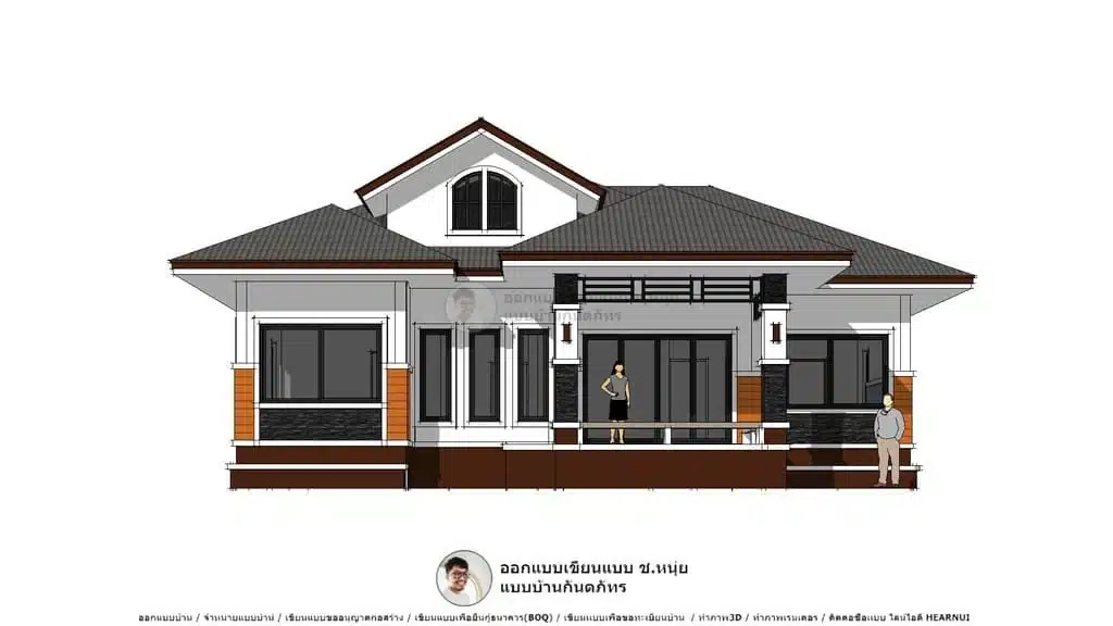 • แบบบ้านชั้นเดียว บ้านสวยดีไซน์อบอุ่นออกแบบด้วยหลังคาเพรสทีจ ที่มีน้ำหนักเบารั่วซึมยาก