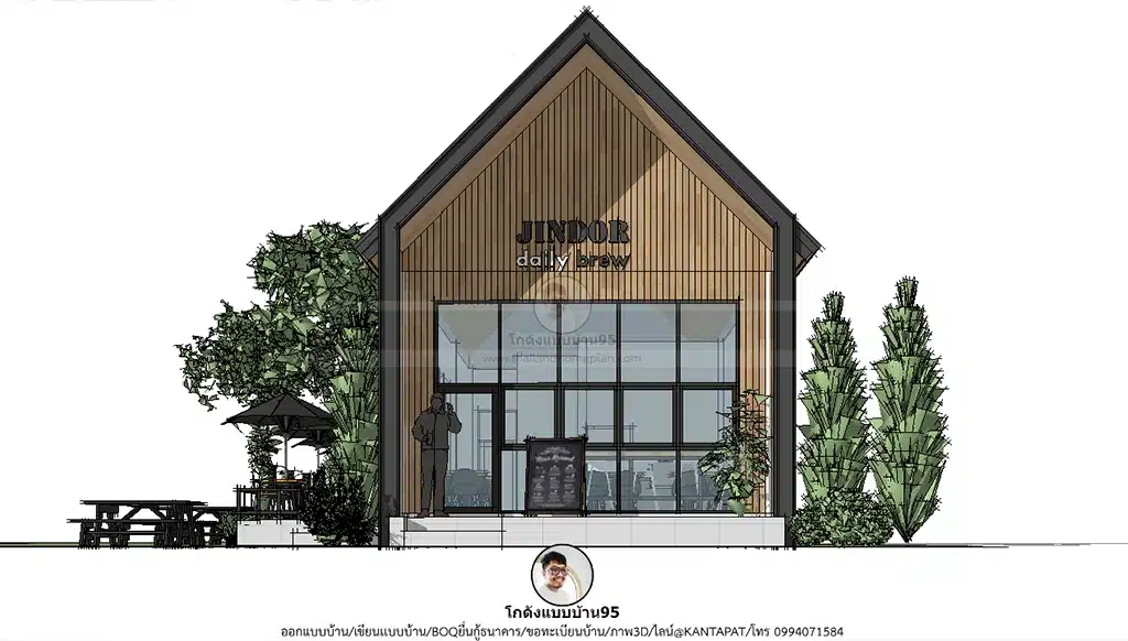 แบบร้านกาแฟ  คือตัวเลือกที่น่าสนใจสำหรับผู้ที่กำลังมองหาแบบร้านที่สวยงามฟังก์ชันครบ และตอบโจทย์การดำเนินธุรกิจ ด้วยรายละเอียดที่ครบถ้วนและเป็นประโยชน์ดังนี้ ดีไซน์อาคารรูปทรงนอร์ดิกสวยโดดเด่นดูอบอุ่น พื้นที่ใช้สอยรวม 79.5 ตารางเมตร ไม่นับด้านข้างและด้านหลัง ฟังก์ชันการใช้งาน: ห้องโถง/ครัว/ระเบียง/เคาน์เตอร์/ห้องน้ำ Type: นอร์ดิก Roof: เมทัลชีท Floor: แกรนิตโต Decorate: อะลูมิเนียมสีดำ|บัวคอนกรีต|ไม้เทียมปิดผิว|ซี-ชาแนล|ระแนงตกแต่ง