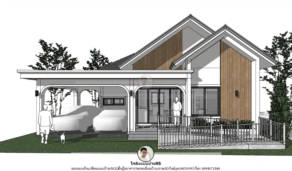 แบบ บ้านชั้นเดียว 2 ห้องนอน P-2566 ฟังก์ชันครบพร้อม โรงจอดรถ