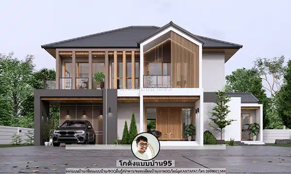 รีวิวบ้าน แบบบ้านสมัยใหม่ ดีไซน์บ้านปั้นหยาผสมจั่ว บ้านครอบครัวใหญ่ สไตล์คอนเทมโพรารี่ ขนาด 223 ตร.ม. แบบบ้านปั้นหยาผสมจั่ว P-2033