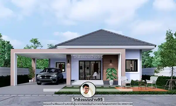 ไอเดียแบบบ้านสวย ๆ แบบบ้านชั้นเดียวหลังคาทรงปั้นหยา ขนาด 112 ตร.ม. รับออกแบบบ้าน S-092