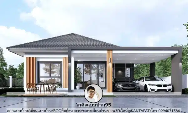 แปลนบ้าน3มิติ P-1506-บ้านปั้นหยาชั้นเดียว บ้านสมัยใหม่2023