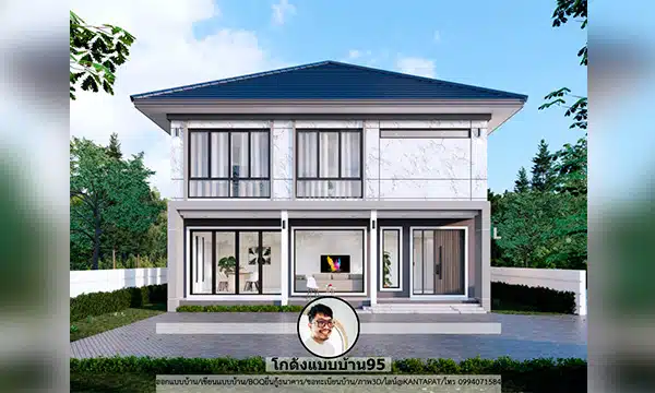 บ้านโมเดิร์นสวยๆ P-2438 โปร่งสบายเรียบหรู บ้าน2ชั้นหลังคาทรงปั้นหยา ขนาด 156 ตร.ม.