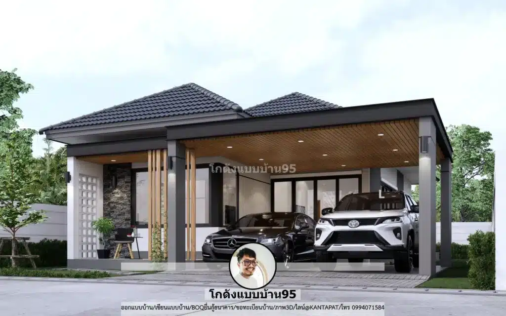 โกดังแบบบ้านบริษัทรับออกแบบบ้าน เขียนแบบบ้าน เขียนแบบขออณุญาตก่อสร้าง รับออกแบบบ้าน S-099 ไอเดียแบบบ้านน่าอยู่ แบบบ้านชั้นเดียว(Onestorey House) พื้นที่ใช้สอยขนาด 110 ตร.ม. ดีไซน์แบบบ้านทรงปั้นหยา ที่ประกอบไปด้วยฟังก์ชันการใช้งาน 3 ห้องนอน 2 ห้องน้ำ 1 ห้องครัว 1 ห้องโถง และสามารถจอดรถยนต์ได้ 1-2 คัน ตัวบ้านมีดีไซน์ที่สวยงามและทันสมัยเน้นการตกแต่งให้เข้ากับยุคสมัยในปัจจุบัน ตัวบ้านตกแต่งด้วยโทนสีขาว เทา ดำ ทำให้ตัวบ้านมีความเรียบหรูภายในตัว ตกแต่งระเบียงหน้าบ้านให้เป็นพื้นที่สำหรับพักผ่อนมุมนั่งเล่นชิล ๆ เสริมการตกแต่งด้วยงานไม้และฝ้าตกแต่งเพื่อเพิ่มบรรยากาศความอบอุ่นให้หน้าบ้านมากยิ่งขึ้น การออกแบบและจัดวางองค์ประกอบที่ลงตัวทำให้แบบบ้านออกมาสวยงามมีมิติมากยิ่งขึ้น ดูแบบบ้านน่าอยู่เพิ่มเติม แบบบ้านโมเดิร์น แบบบ้านมินิมอล แบบบ้านสำเร็จรูป และงานออกแบบบ้านสวย ๆ อีกมากมายเป็นโกดังให้รับชมฟรีที่นี่ โกดังแบบบ้าน