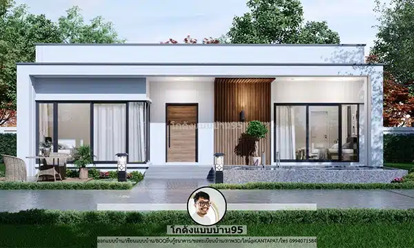 แบบบ้านหลังเล็ก P-2460 แบบบ้านชั้นเดียว 1 ห้องนอน 1 ห้องน้ำ 67 ตร.ม. ทรงกล่องสวยโมเดิร์น