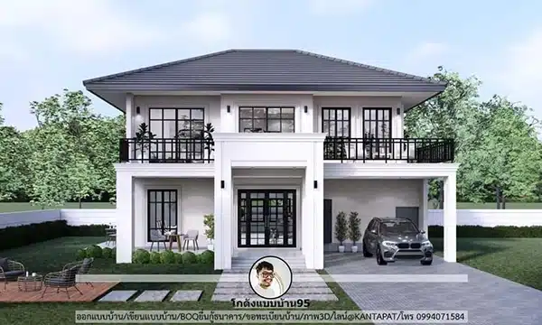 แบบบ้านสไตล์คลาสสิก-โมเดิร์น พื้นที่ใช้สอย 227 ตร.ม. ฟังก์ชันครบ ตอบโจทย์ครอบครัวยุคใหม่ บ้านปั้นหยา2ชั้น P-2489 รับเขียนแบบบ้าน, แบบบ้าน 2ชั้น, แบบบ้าน 3 ห้องนอน, แบบบ้านปั้นหยา, แบบบ้านโคโลเนียล-ยุโรป / คำนวณราคาบ้าน, บริการทำภาพ3D, บริการทำภาพ3มิติ, บีโอคิวยื่นกู้ธนาคาร, รับออกแบบบ้าน, รับเขียนแบบบ้าน, ออกแบบบ้าน, เขียนแบบบ้าน, แบบบ้าน 3 ห้องนอน, แบบบ้าน2ชั้น, แบบบ้านชั้นเดียว, แบบบ้านโคโลเนียล-ยุโรป