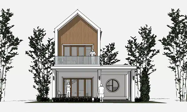 แบบบ้าน 2 ชั้น สไตล์โมเดิร์นหลังเล็ก อบอุ่นน่ารัก แบบโฮมมี่ 83 ตร.ม. 1 ห้องนอน บ้านทรงกล่อง P-2149